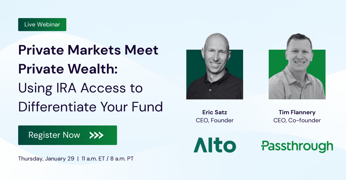 We're hosting a webinar on January 29 at 11 a.m. ET with Alto CEO Eric Satz and me to discuss what this partnership means for fund managers. We'll cover: